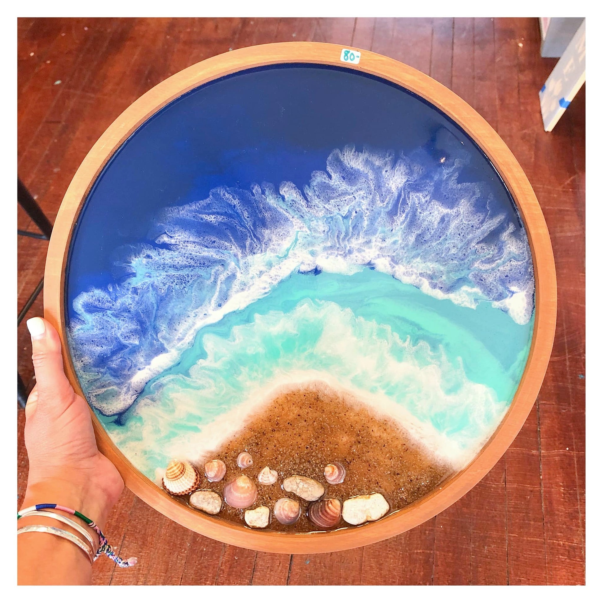 You get to choose your own stain & paint colors at the workshop to use to create your very own resin art project - make it a beachy theme or choose other colors to match your home decor.