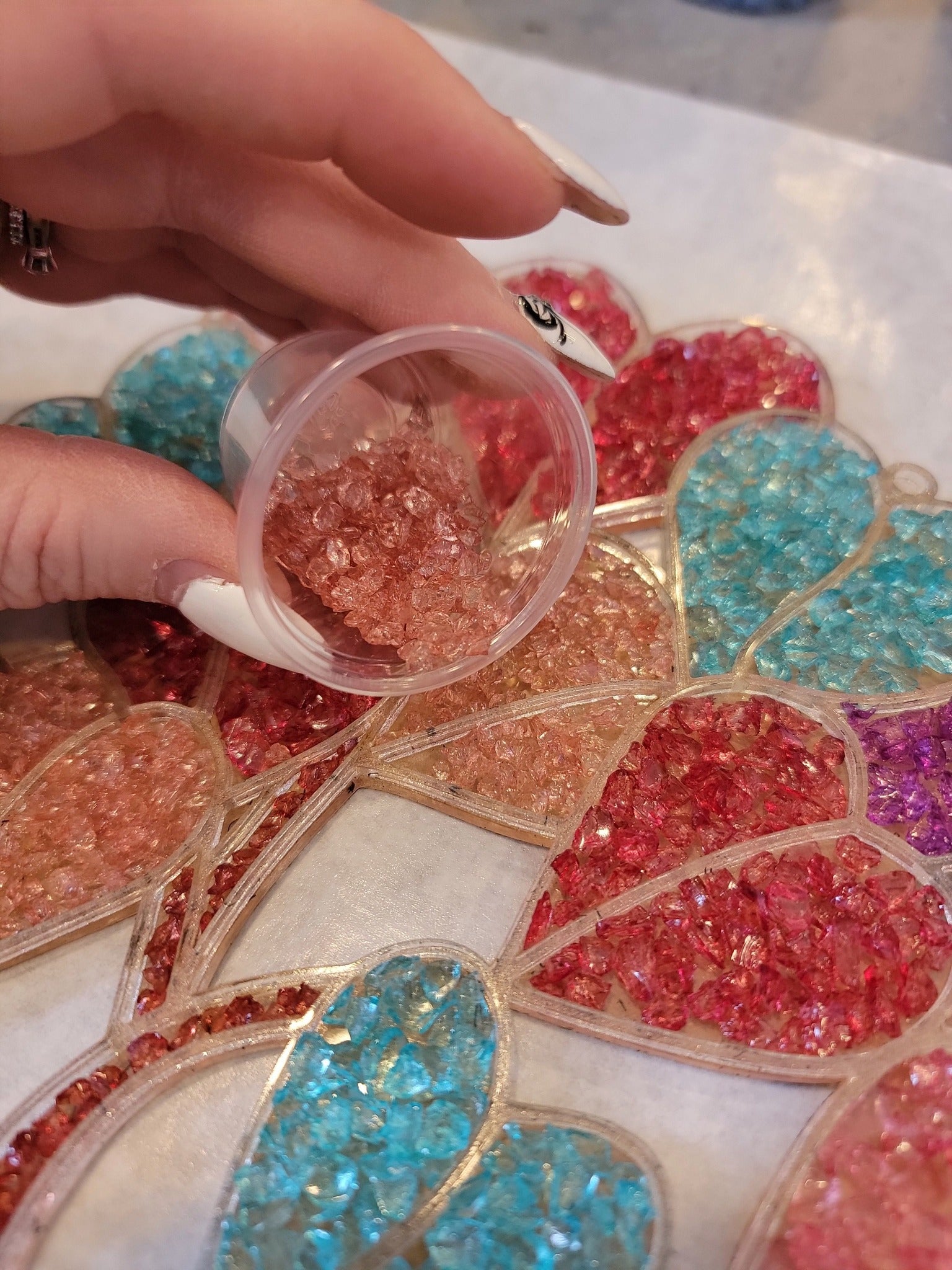 In this guided workshop, you’ll design your suncatcher using vibrant crushed glass and resin to achieve a gorgeous fused-glass look. Our instructor will walk you through each step as you arrange your design and set it in place. No experience needed—just bring your imagination!