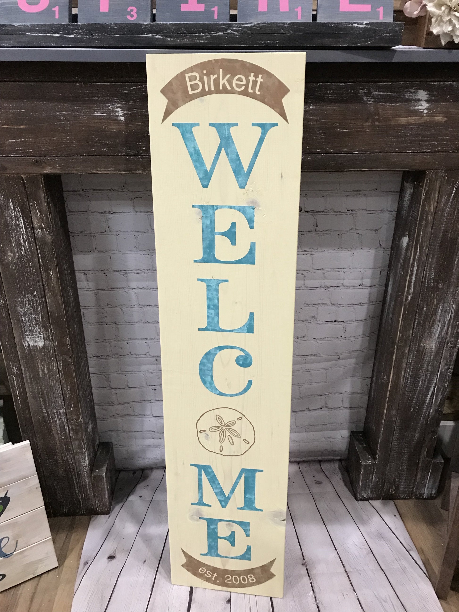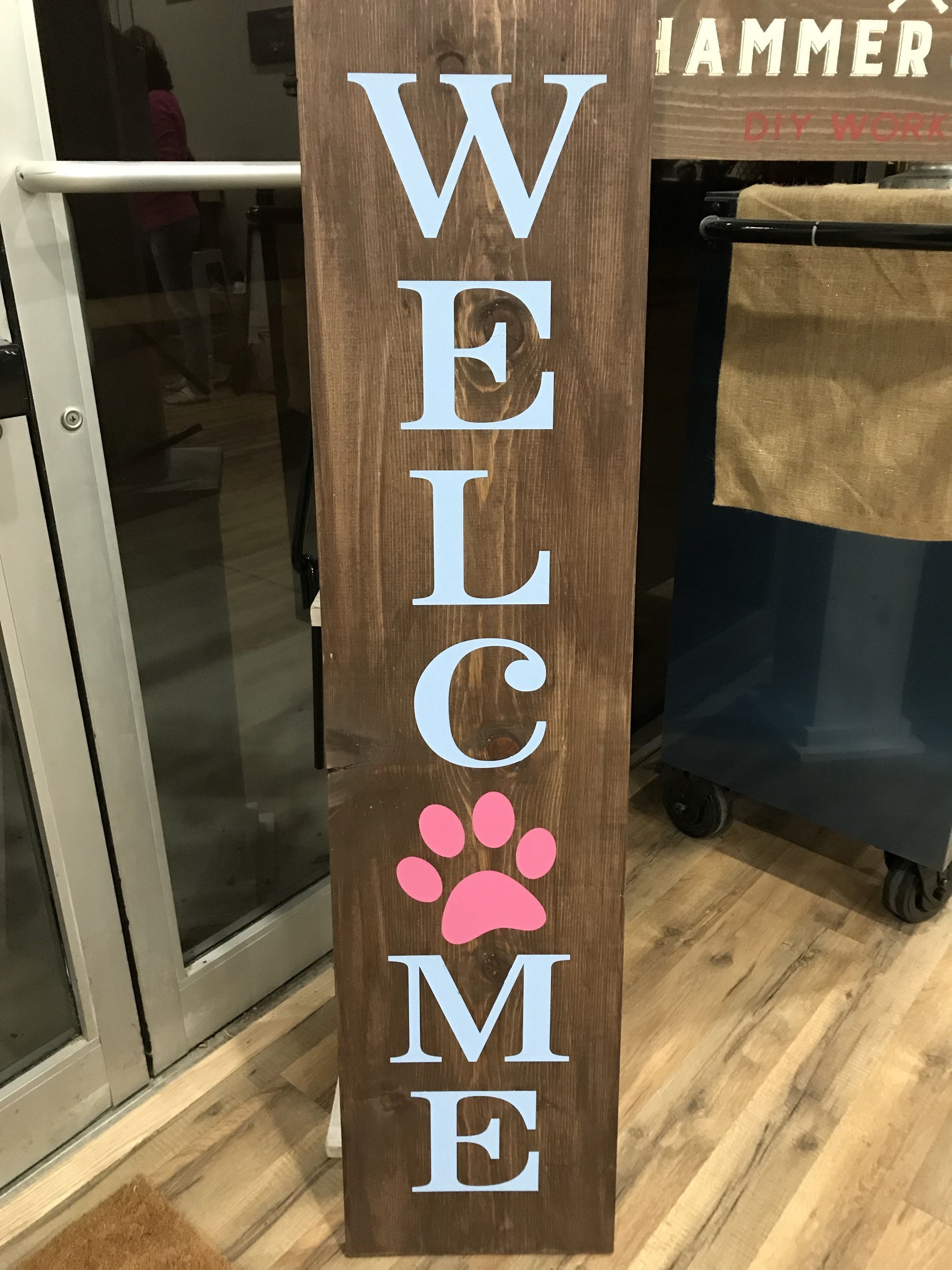Join us for a hands-on workshop to create your own Oversized Wood Plank Sign – measuring a substantial 12" x 48"!