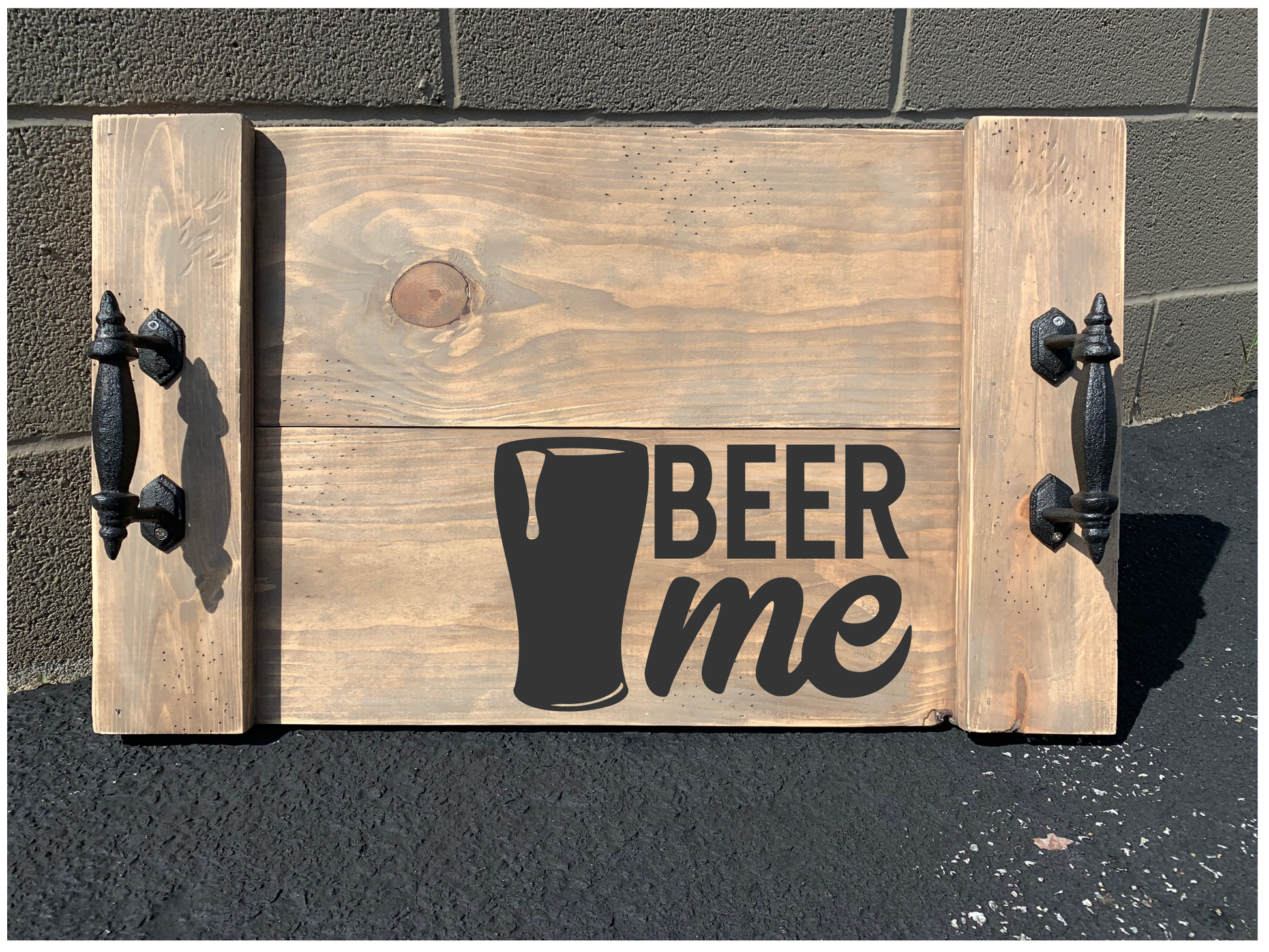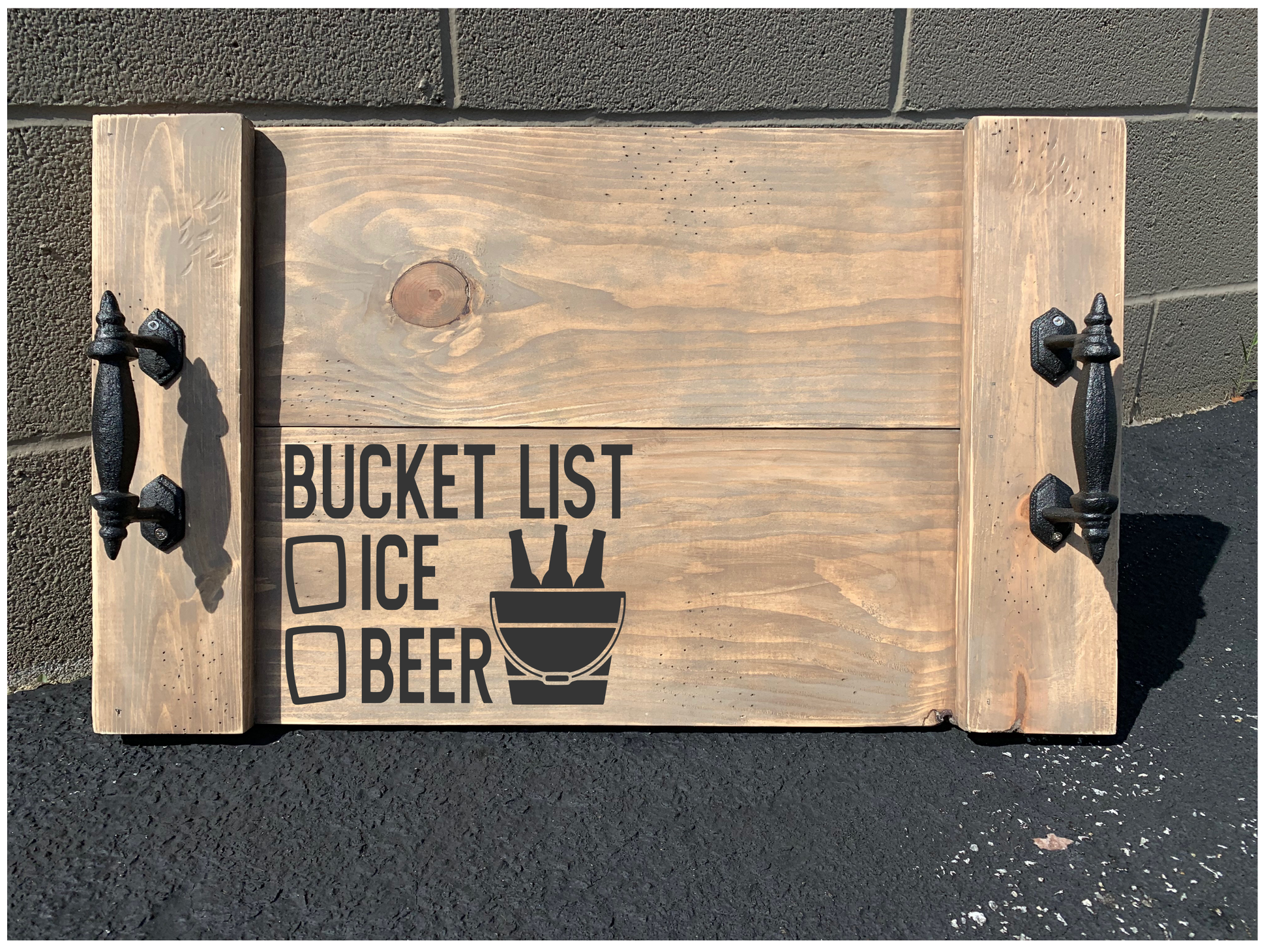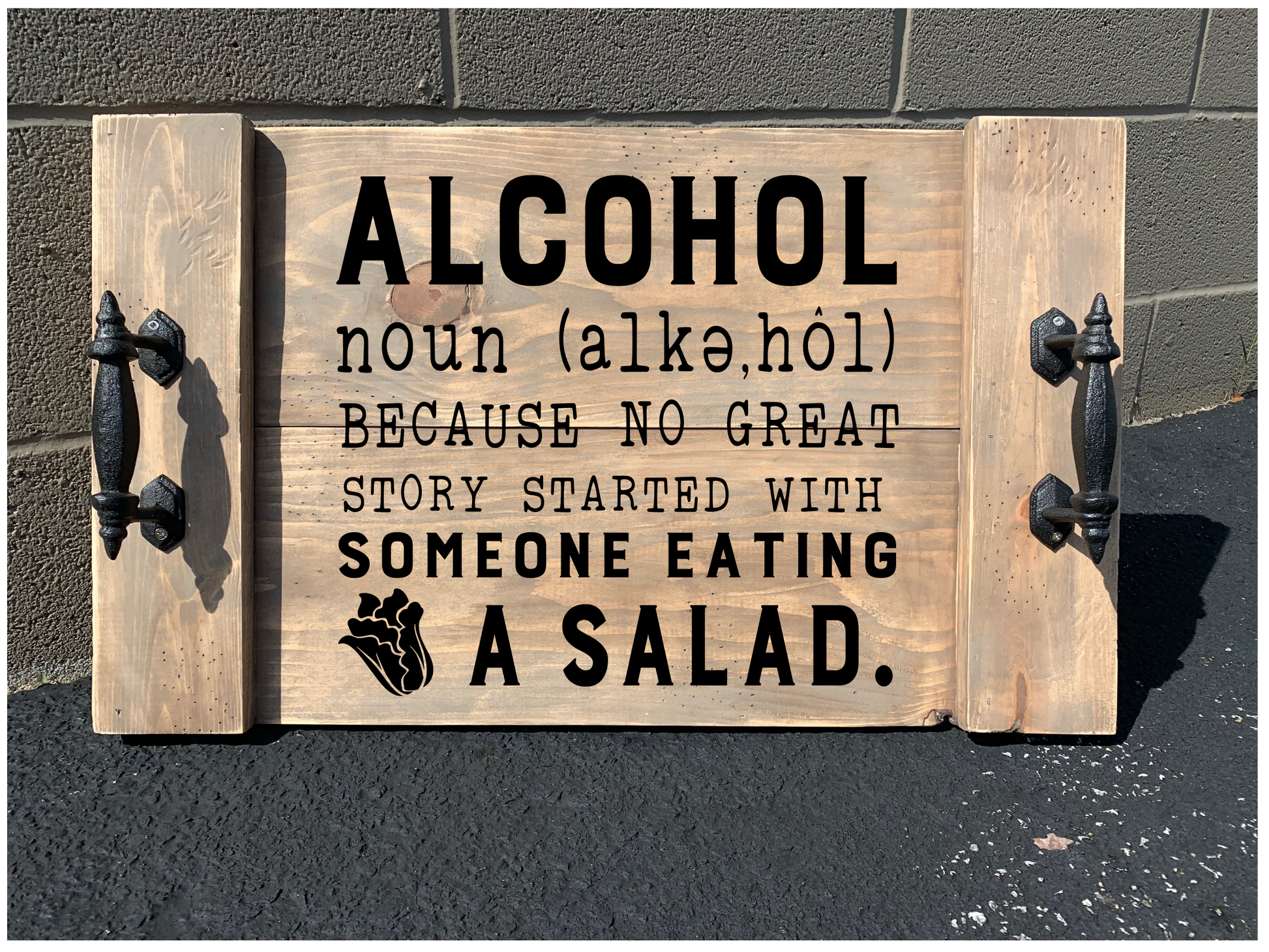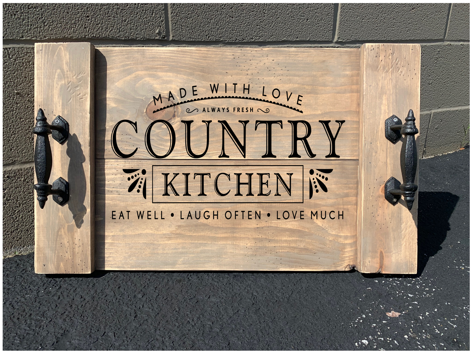 How it works: When you arrive the wood will be unfinished and the one-time use stencil will be cut with your pre-ordered design. You will be able to choose your own colors for the wood and stencil, using our wide selection of stain and paint. The designs listed below are only examples and do not reflect YOUR final product.